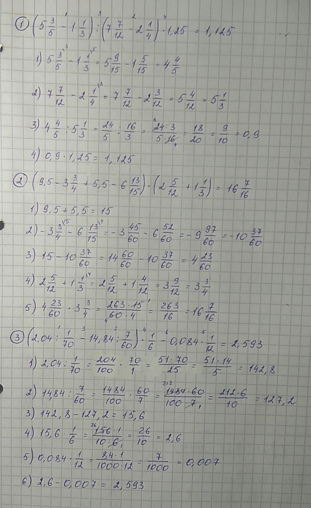 1) ( 5 3/5 - 1 1/3) ÷ (7 7/12 - 2 1/4) * 1,25;