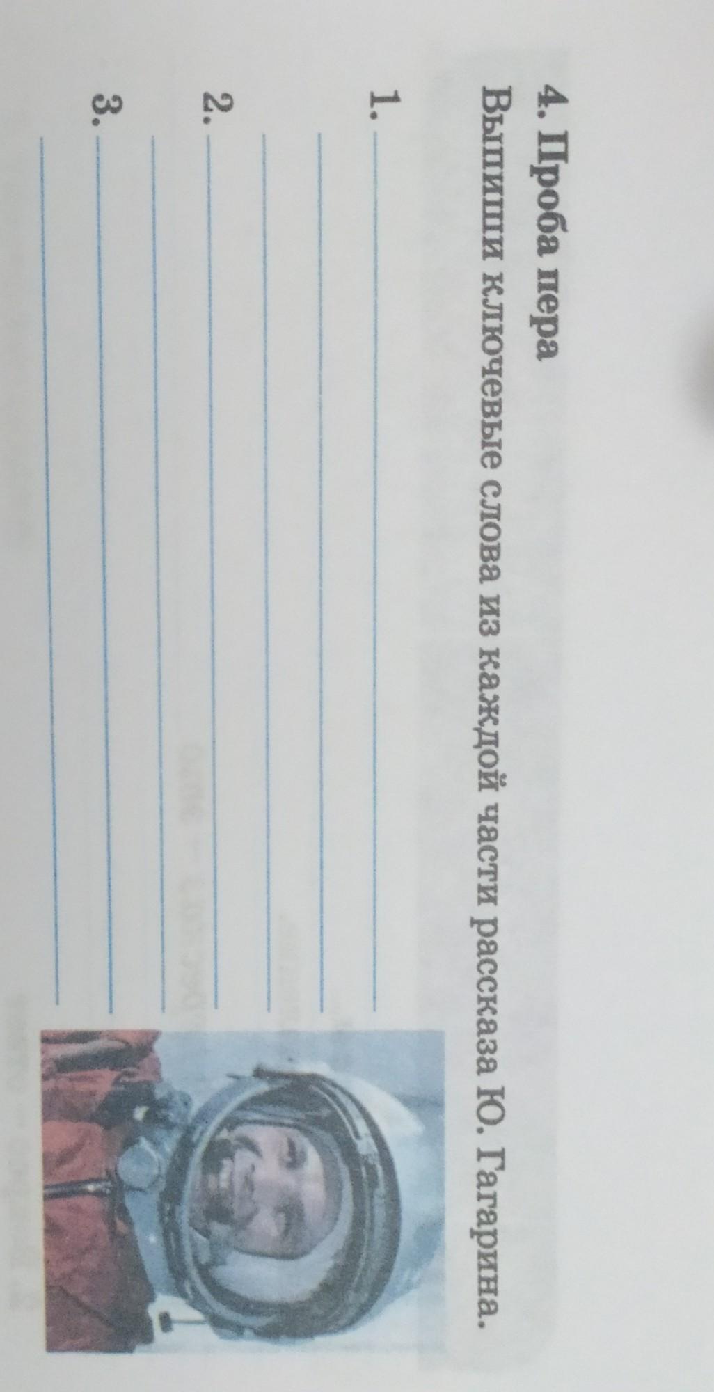 Выпиши ключевые слова из каждой части рассказа Ю.Гагарина