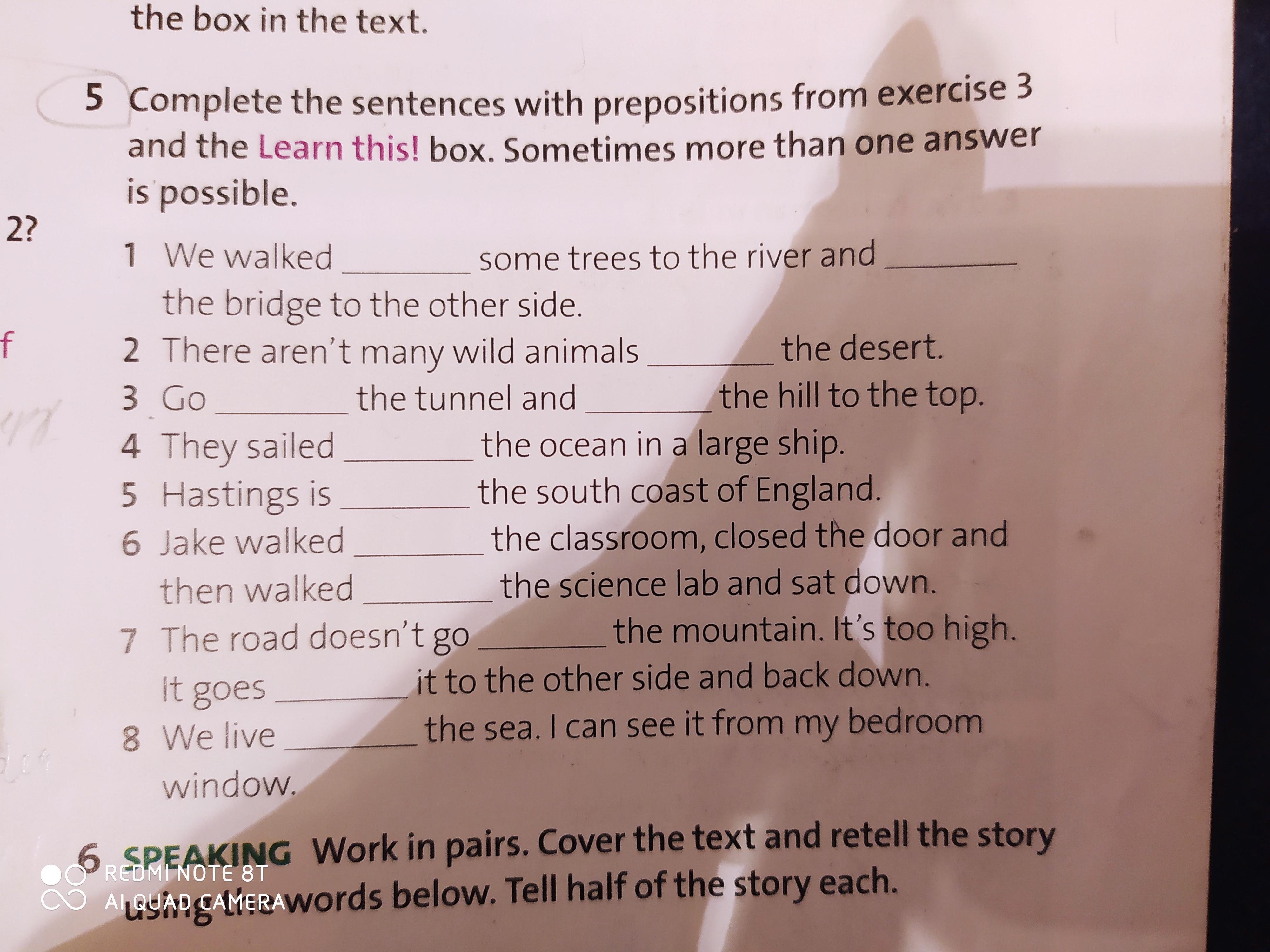 1. through, across