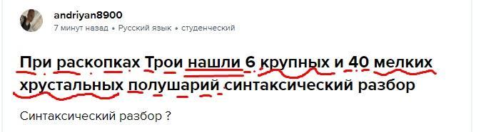 При раскопках Трои нашли 6 крупных и 40 мелких хрустальных полушарий синтаксический разбор