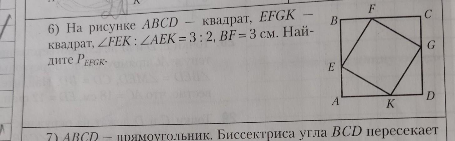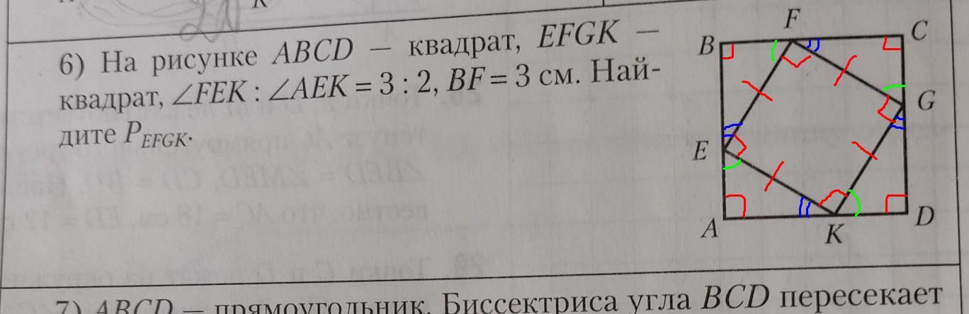Так как углы квадрата прямые, то ∠E=∠F=∠G=∠K=90°;