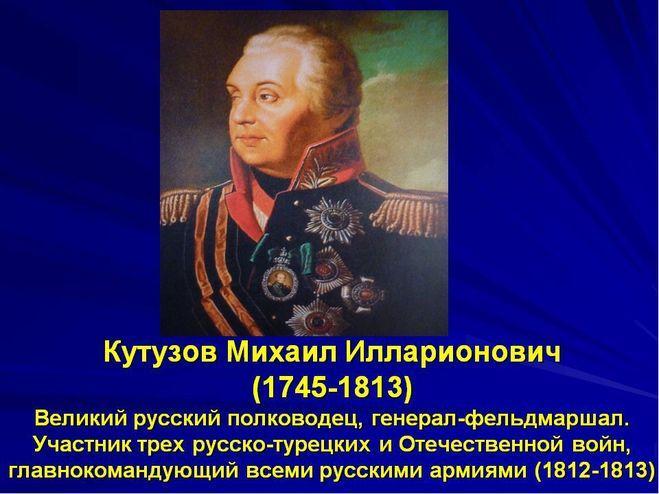 Михаил Илларионович Кутузов родился 16 сентября 1745 года в городе Петербурге. Великий русский полководец, генерал-фельдмаршал, князь Смоленский.
