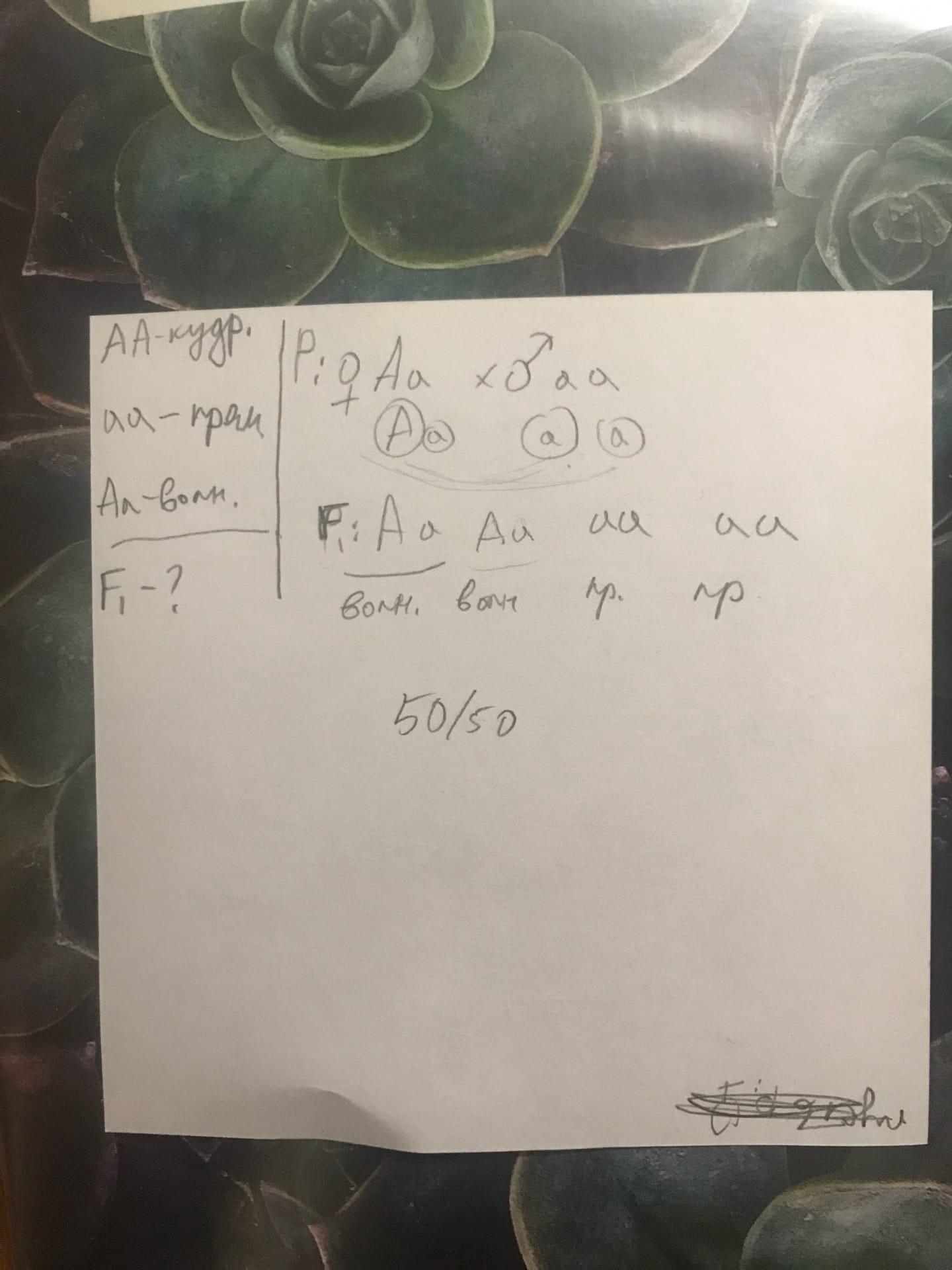 тут невозможен вариан кудрявых АА и прямых аа, тк все дети получились бы с волнистыми Аа.