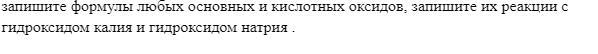 запишите формулы любых основных и кислотных оксидов, запишите их реакции с гидроксидом калия и гидроксидом натрия .