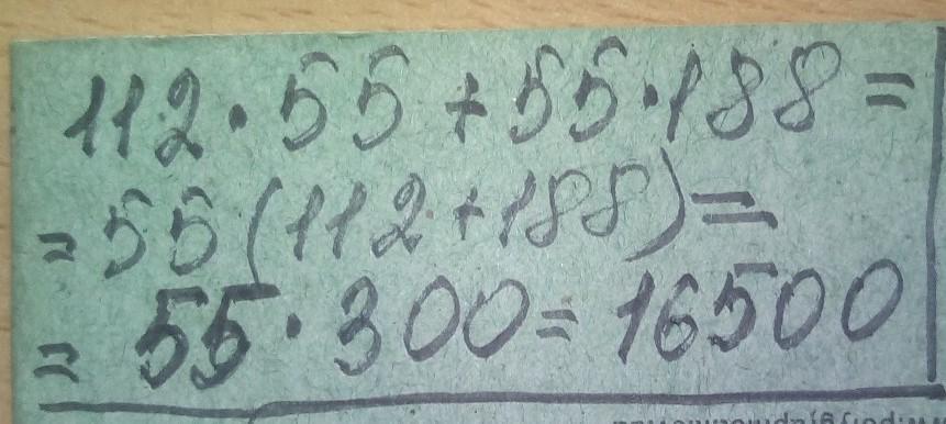 СРОЧНО!!! 112 ∙ 55 + 55 ∙ 188 вычислить удобным способо