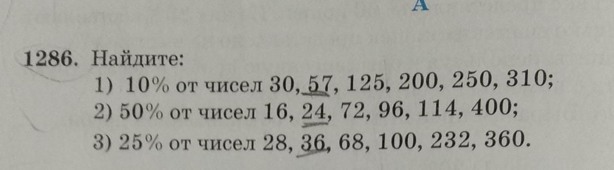 1) 10% от чисел 30, 57, 125, 200, 250, 310