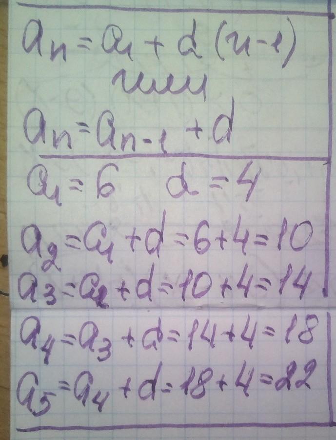 знайдіть 4 перші члени арифметичної прогресії (an),якщо a1=6,d=4​ даю 50 балів