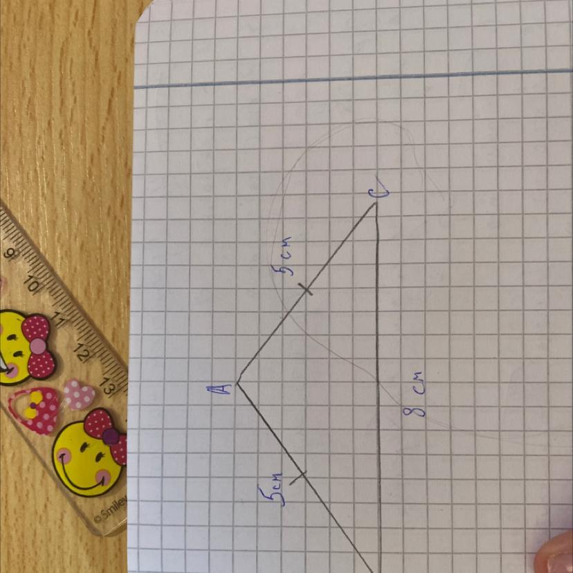 Постройте равнобедренный треугольник со сторонами 5 см. и 8 см.( на чертеже должны быть видны шаги построения).