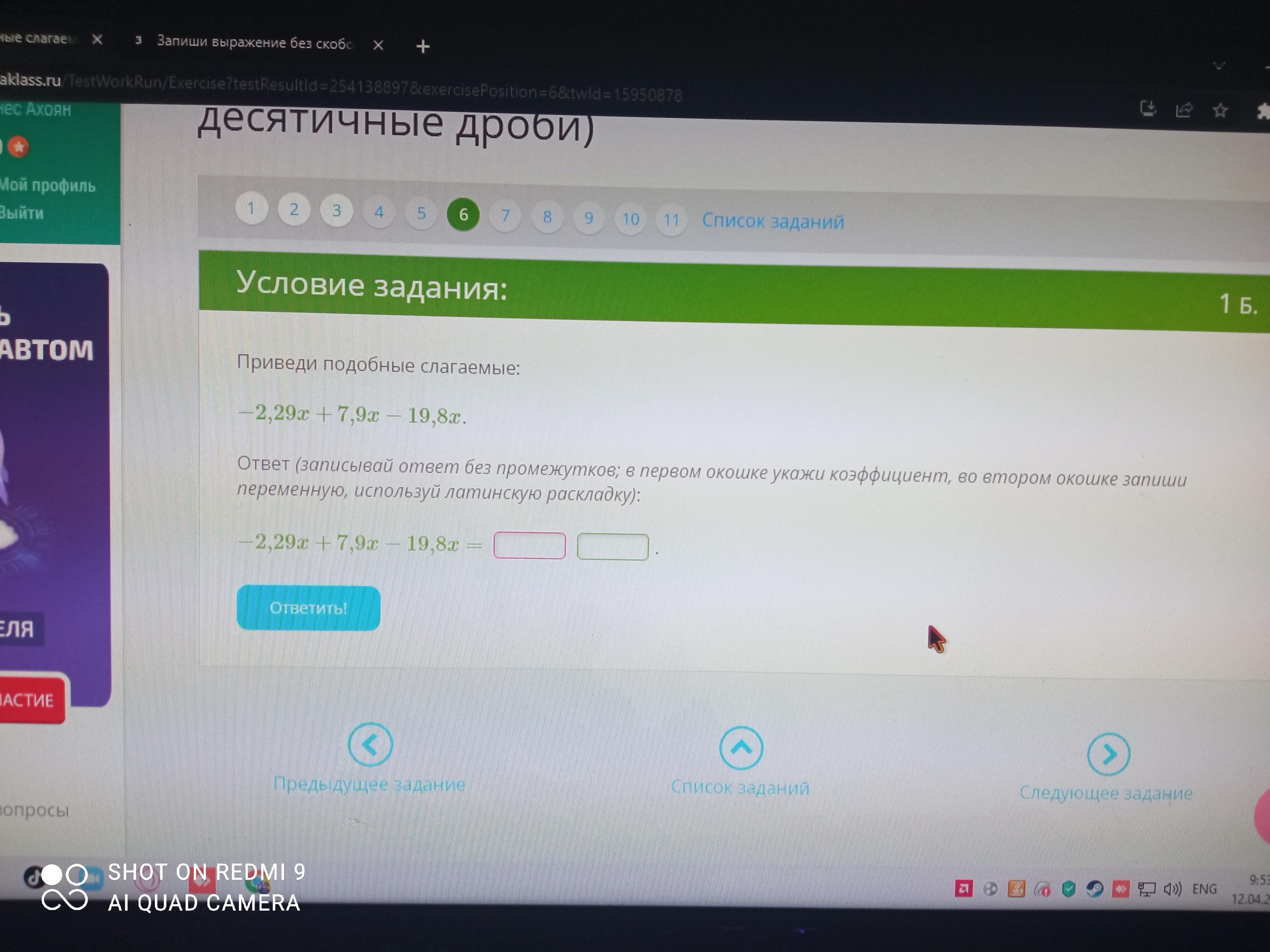 - 2,29х+ 7,9х - 19,8х = (- 2,29 + 7,9 - 19,8)•х = - 14.19х.