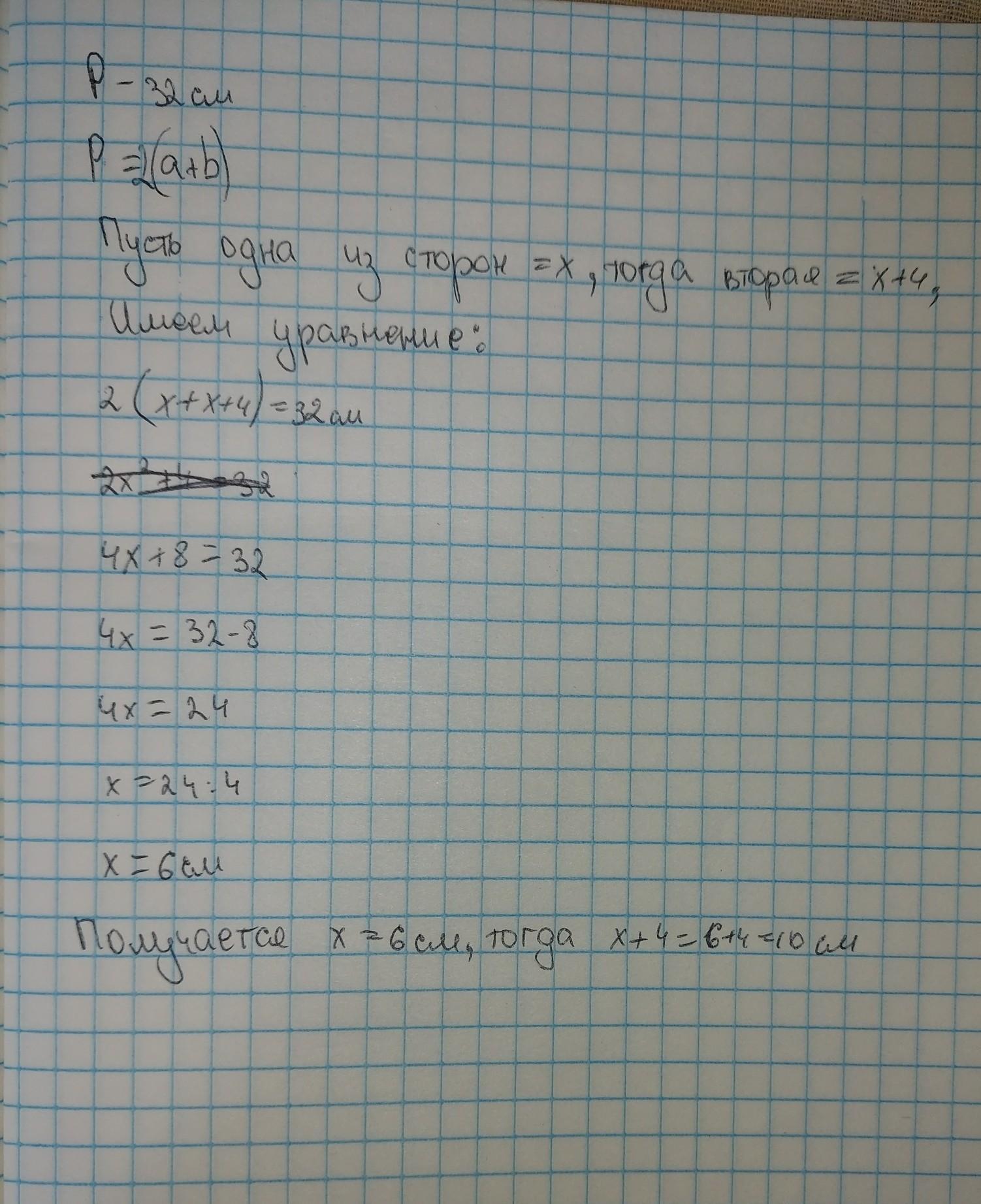 Надеюсь всё понятно, если что окончательный ответ: 6см, 6 см, 10 см, 10 см