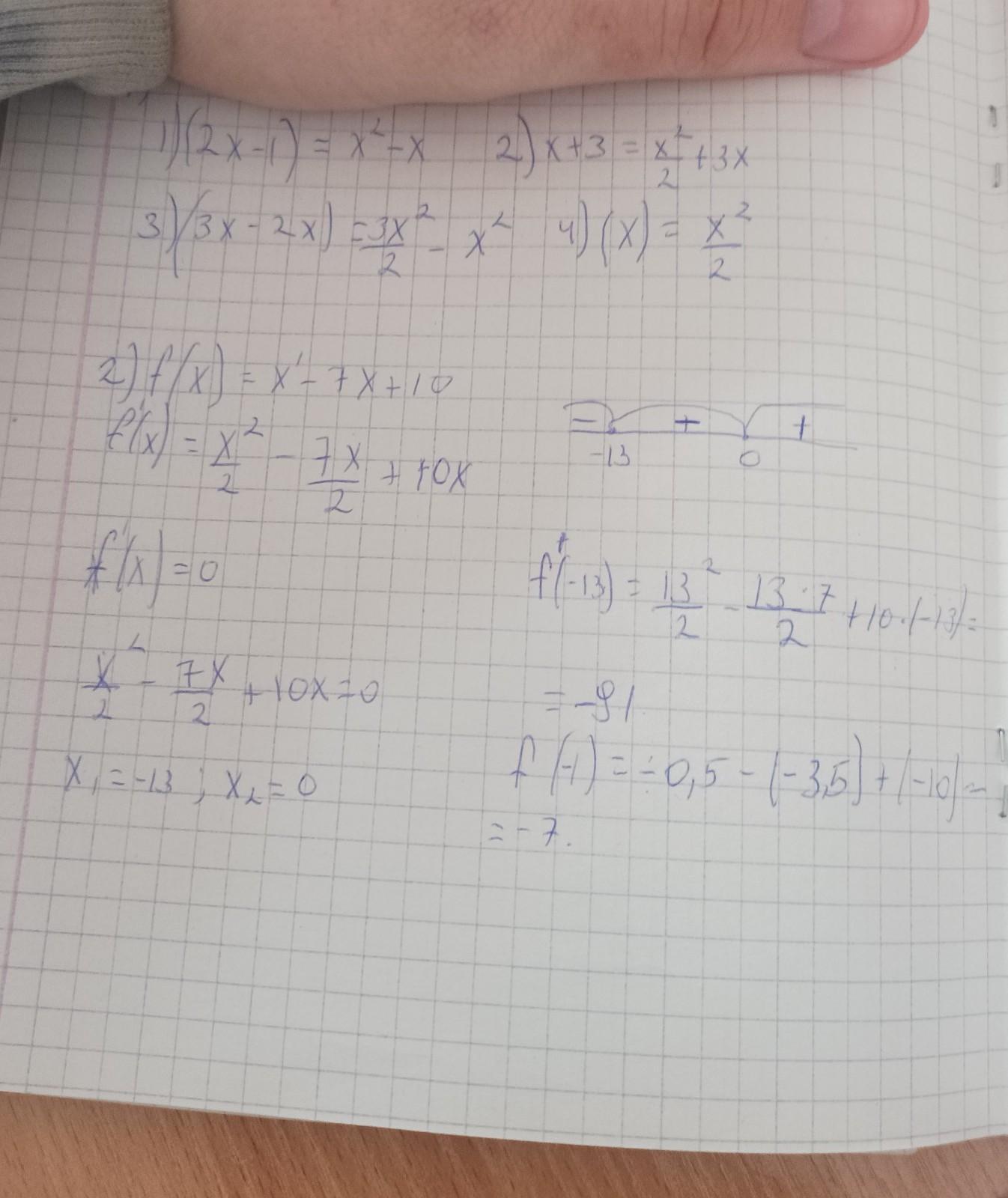 Выяснить, при каких значениях х производния функ (2) принимает отрицательные значення, если:
