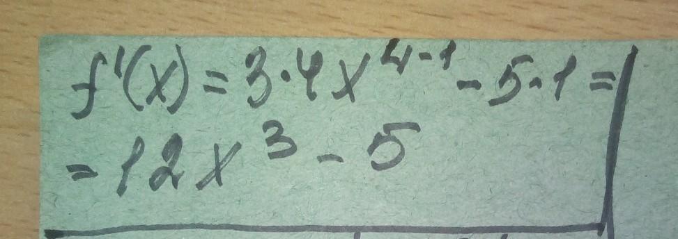 Знайти похідну функції: f(x) = 3x⁴-5x.
