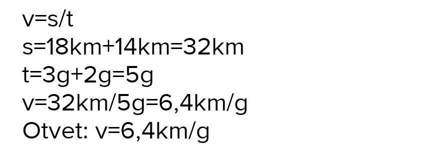 Турист за 3 години пройшов 18 км а за наступні 2 години 14 км обчисли середню швидкість туриста(5 клас)