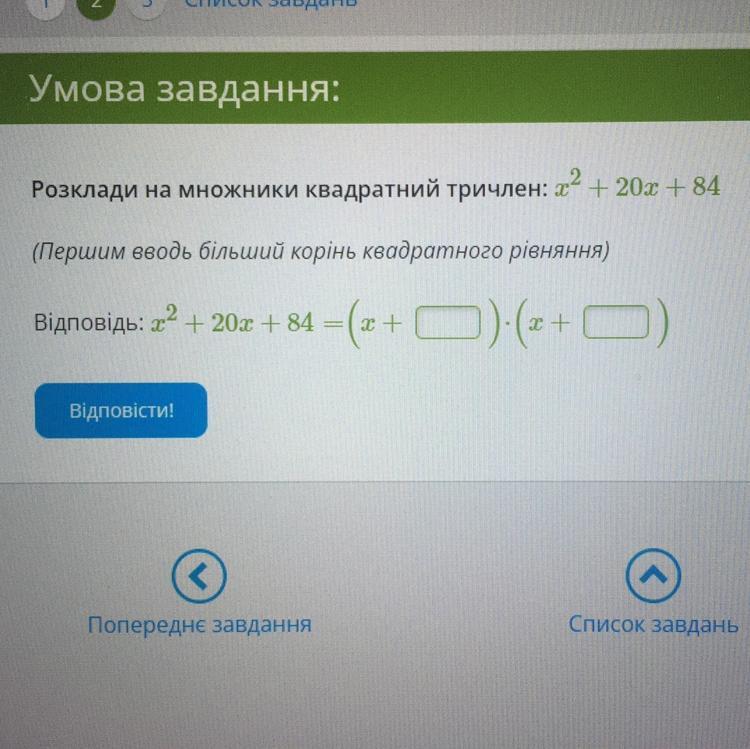 D = 20² - 4* 1 *84 = 64 > 0 ; x₁ = - 14 ; x₂ = - 6 .