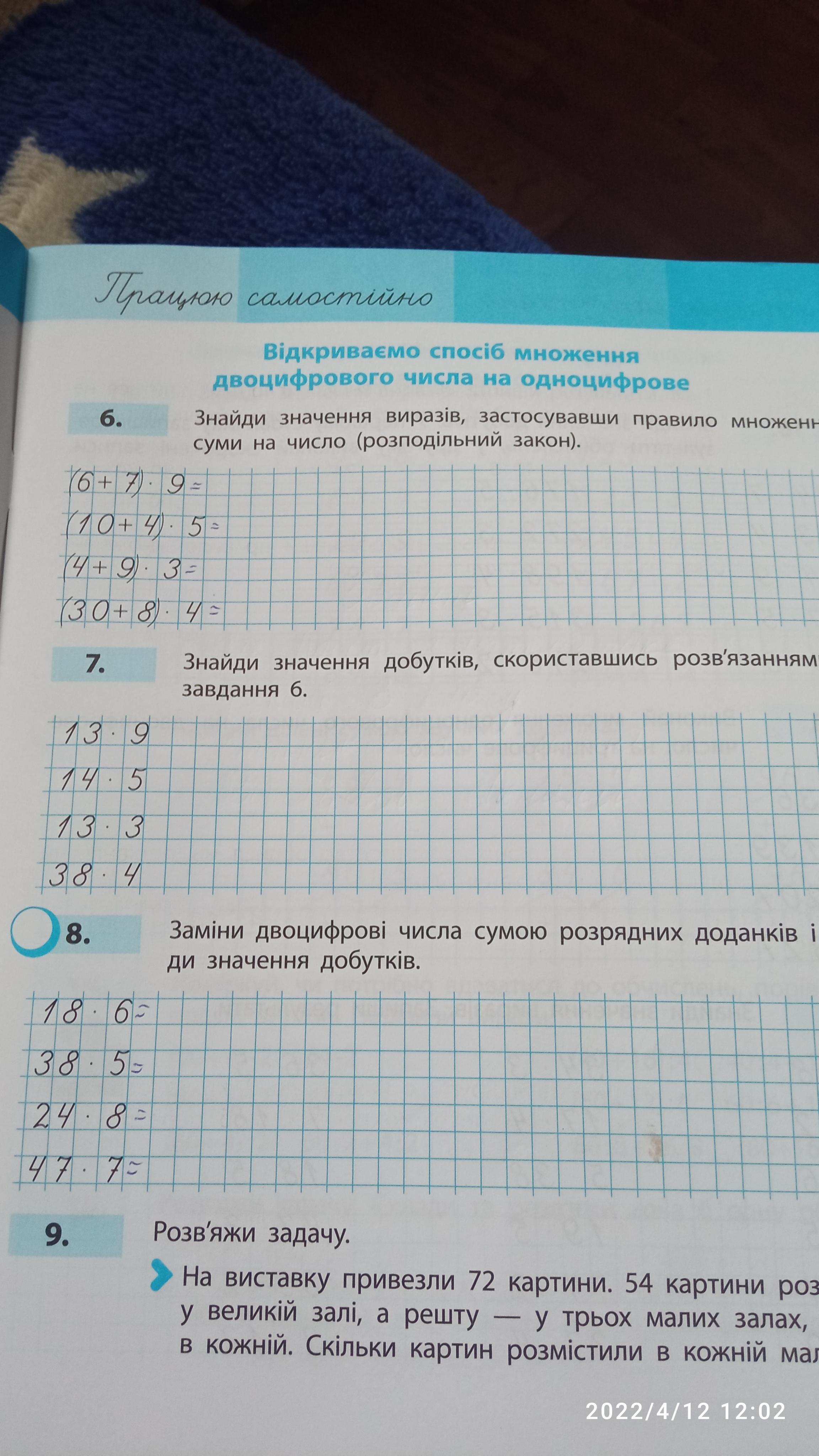 8. 18*6=108 38*5=190 24*8=192 47*7=329