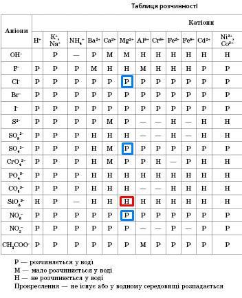 Треба підставити катіон магнію та кожний даний аніон(хлор і тд). У нашому випадку нерозчинною сіллю буде MgSiO3