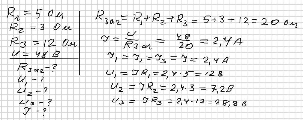 R=R1+R2+R3=5+3+12=20 Ом
