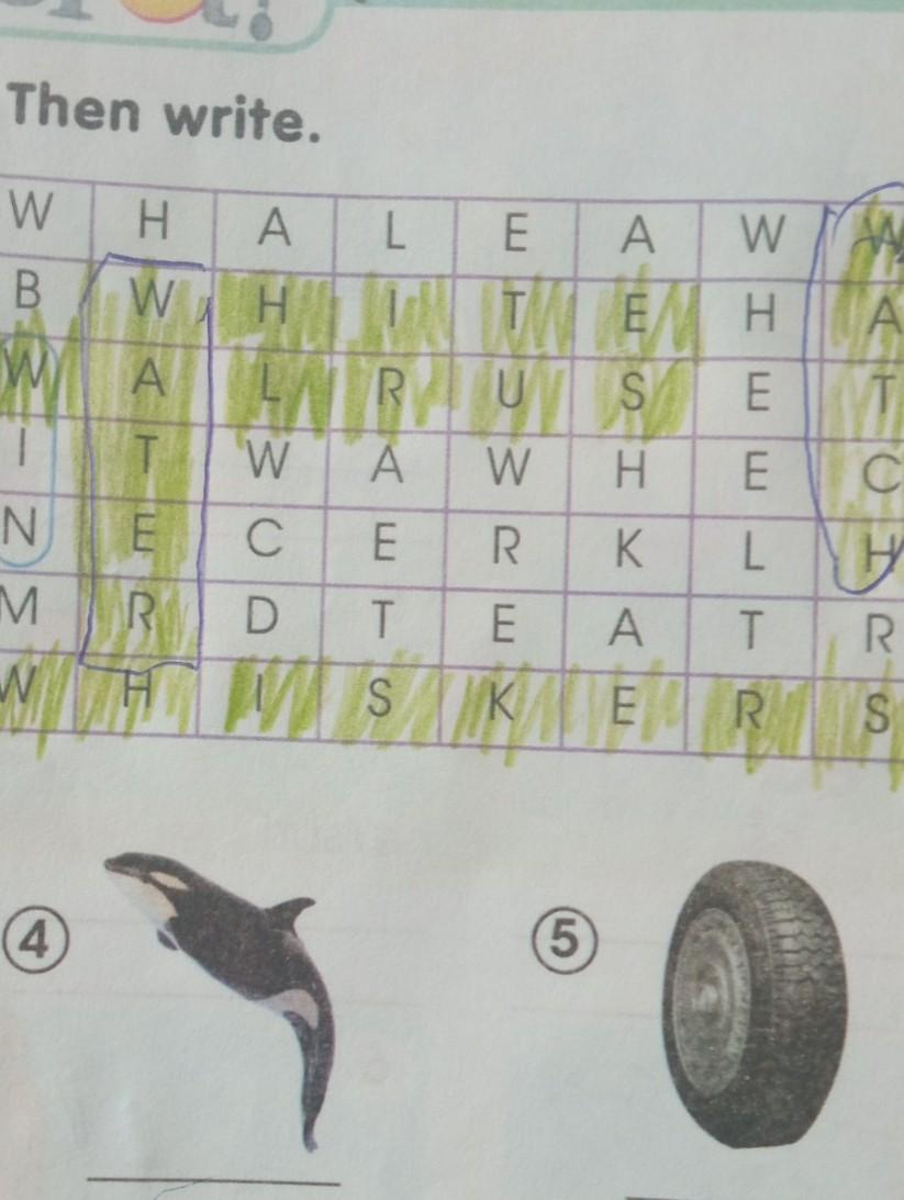 Sounds Sp ! 5 Find and circle. Then write. W H A L E AW WAHITI TI E Τ Ε Η W А HAL E WA WH E С win E R. K M B D T Ε Ι Α T R VS KERS UV SE I30 z - Z 33 Ly E 2 2 as White 5 4