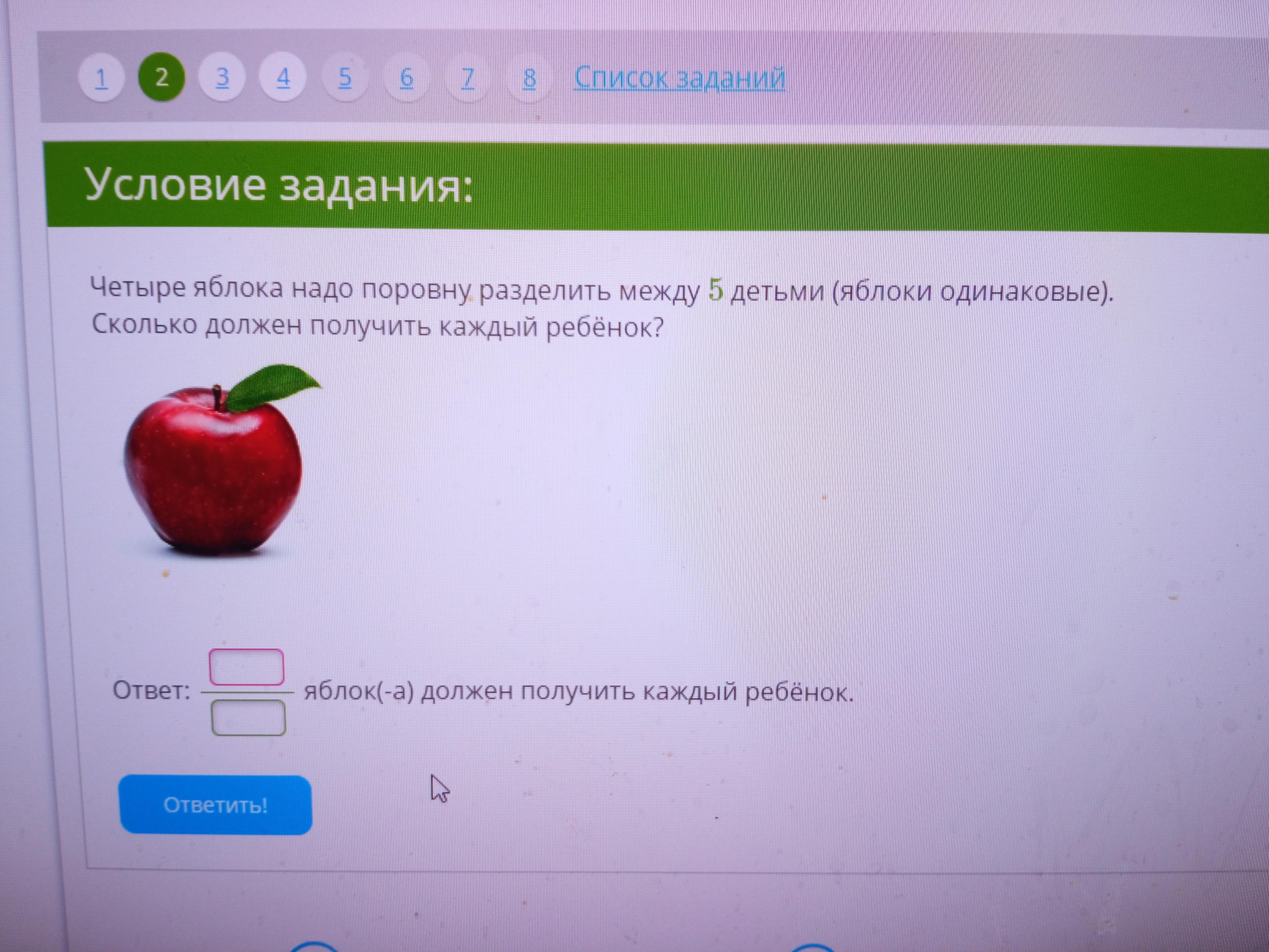 Во2-ом 4/5, а в 5-ом: 1/30 от 180°=6°