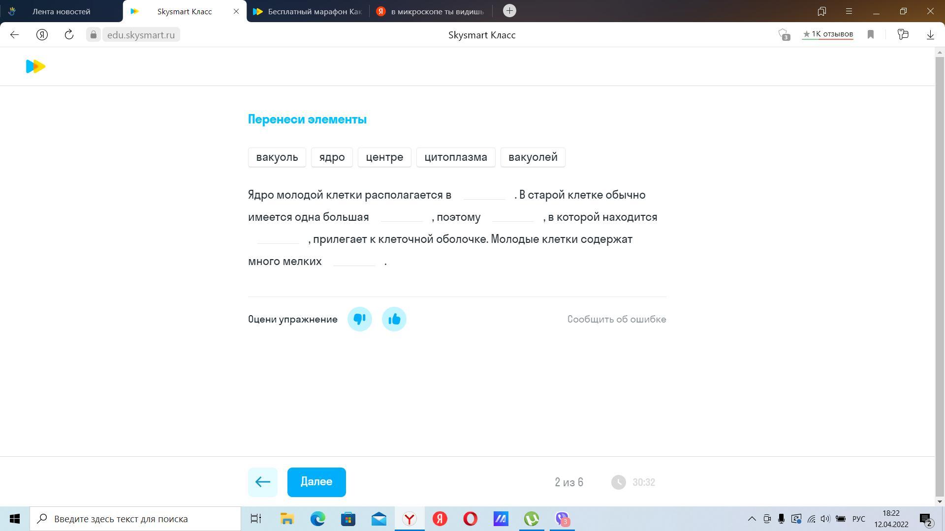 центре, вакуоль,цитоплазма, ядро, вакуолей
