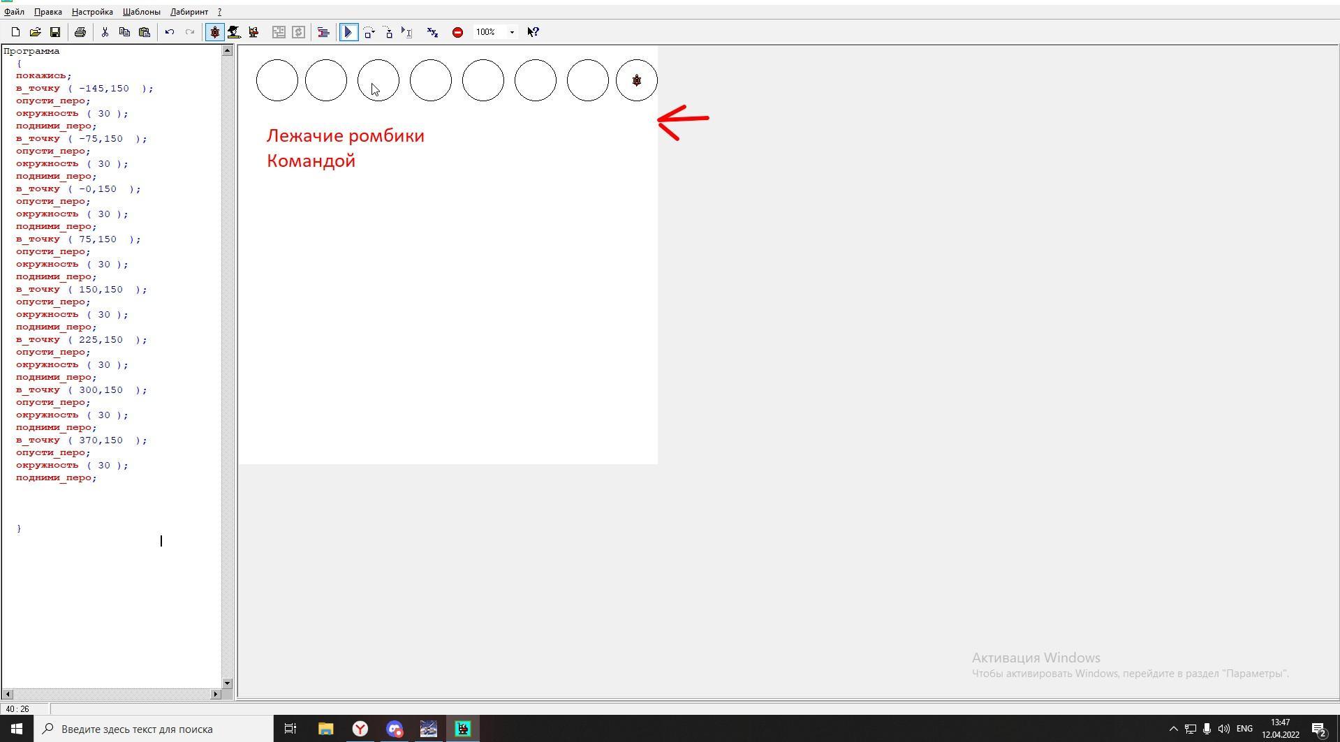 Нужно сделать Лежачие ромбики в приложении Robowin (черепашка)