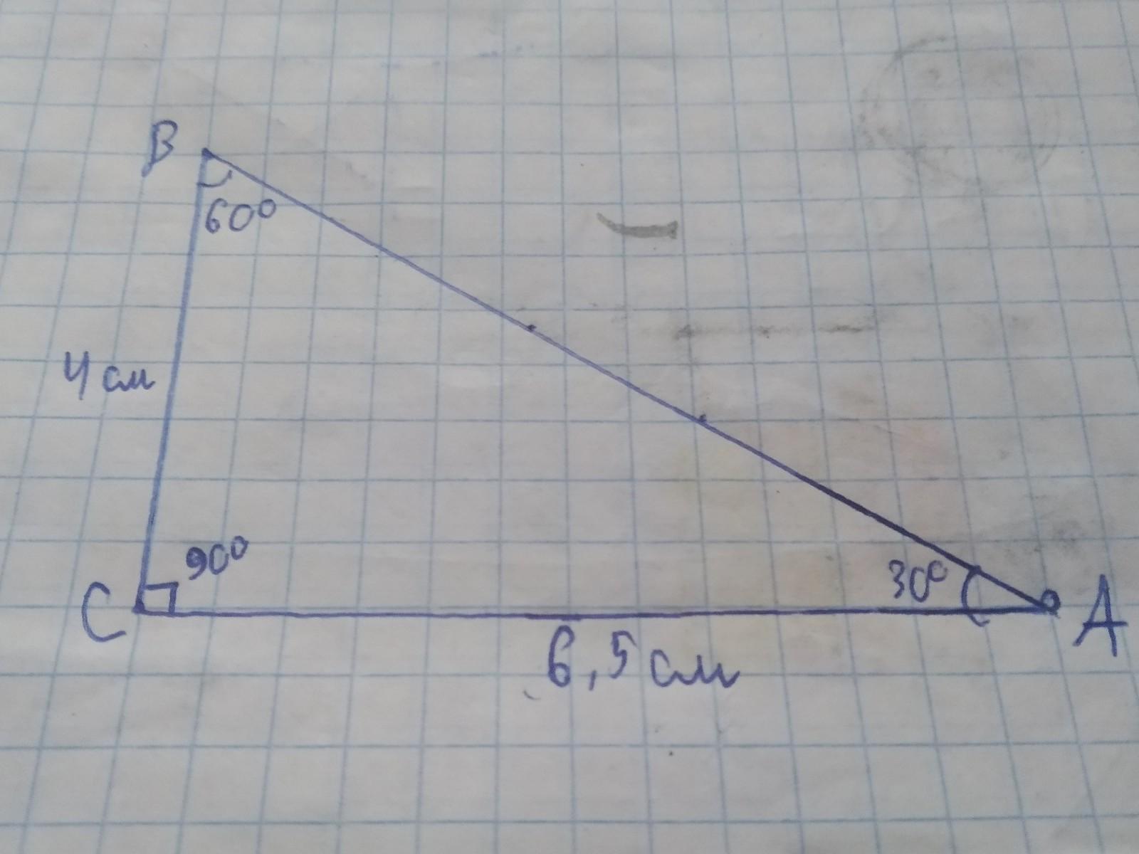 Побудуйте трикутник ABC за такими даними:BC=4см , кут C=90градусов , кут B=60 градусов срочтнооооо