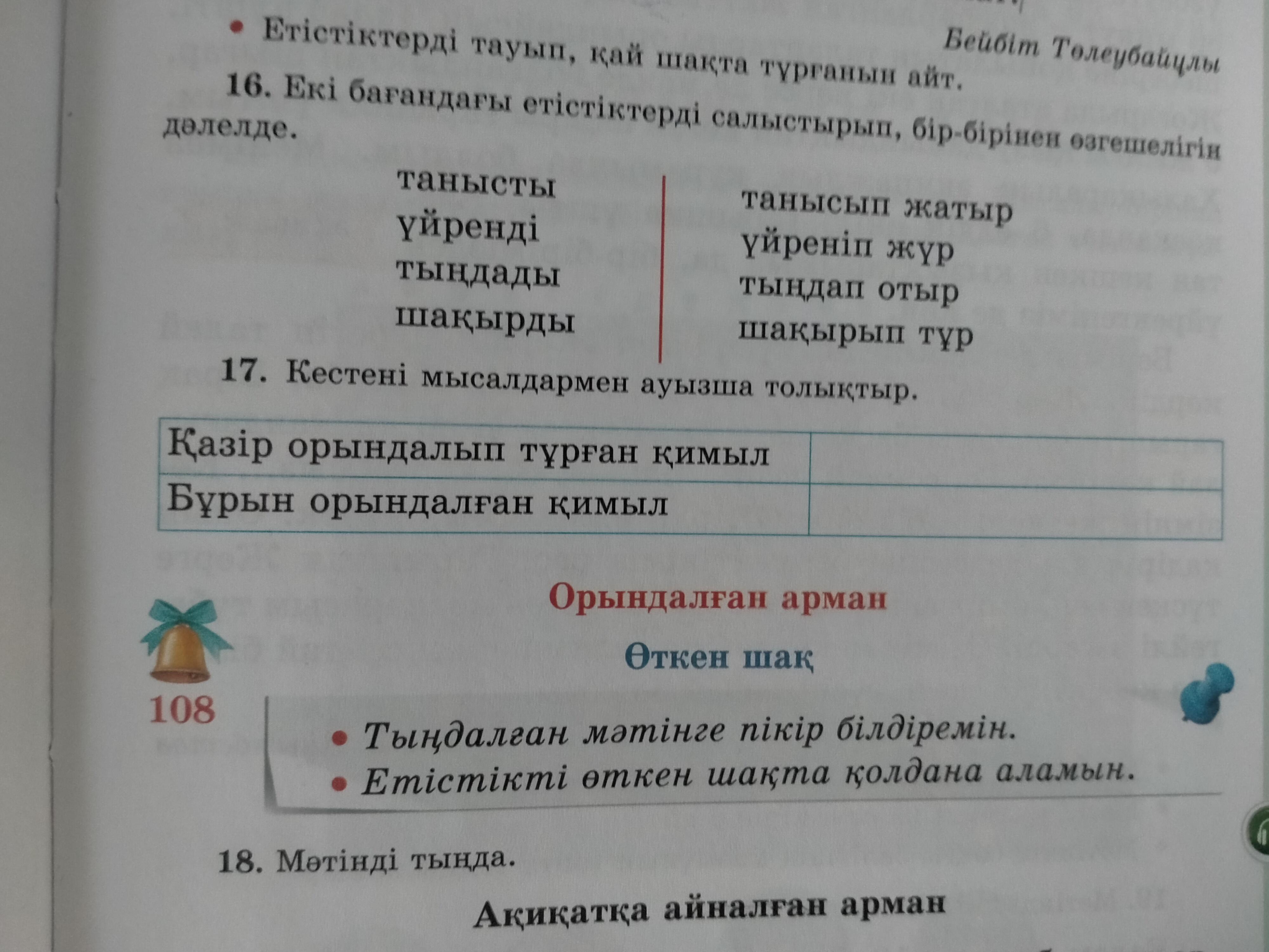 Бұрын орындалған қимыл:танысты, үйренді, тыңдады, шықырды