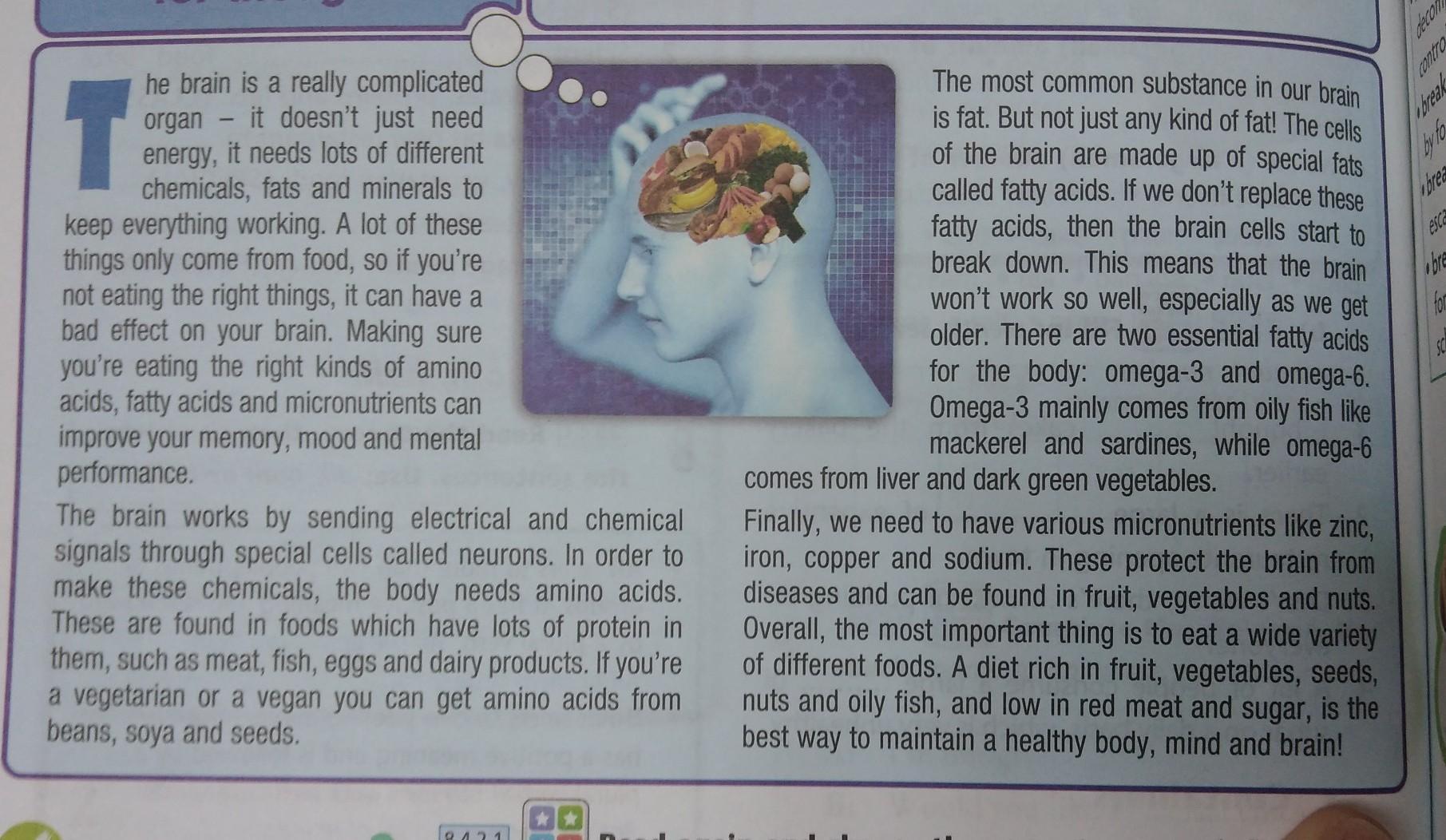 - your brain is a really completed organ it doesn't just need energy you need a lot of different keep everything working. is Brian works by sending electrical and give me a call signals throw special sales called neurons. the most common substance in our brain is fat finally we need to have various micronutrients like zink, iron, copper and sodium