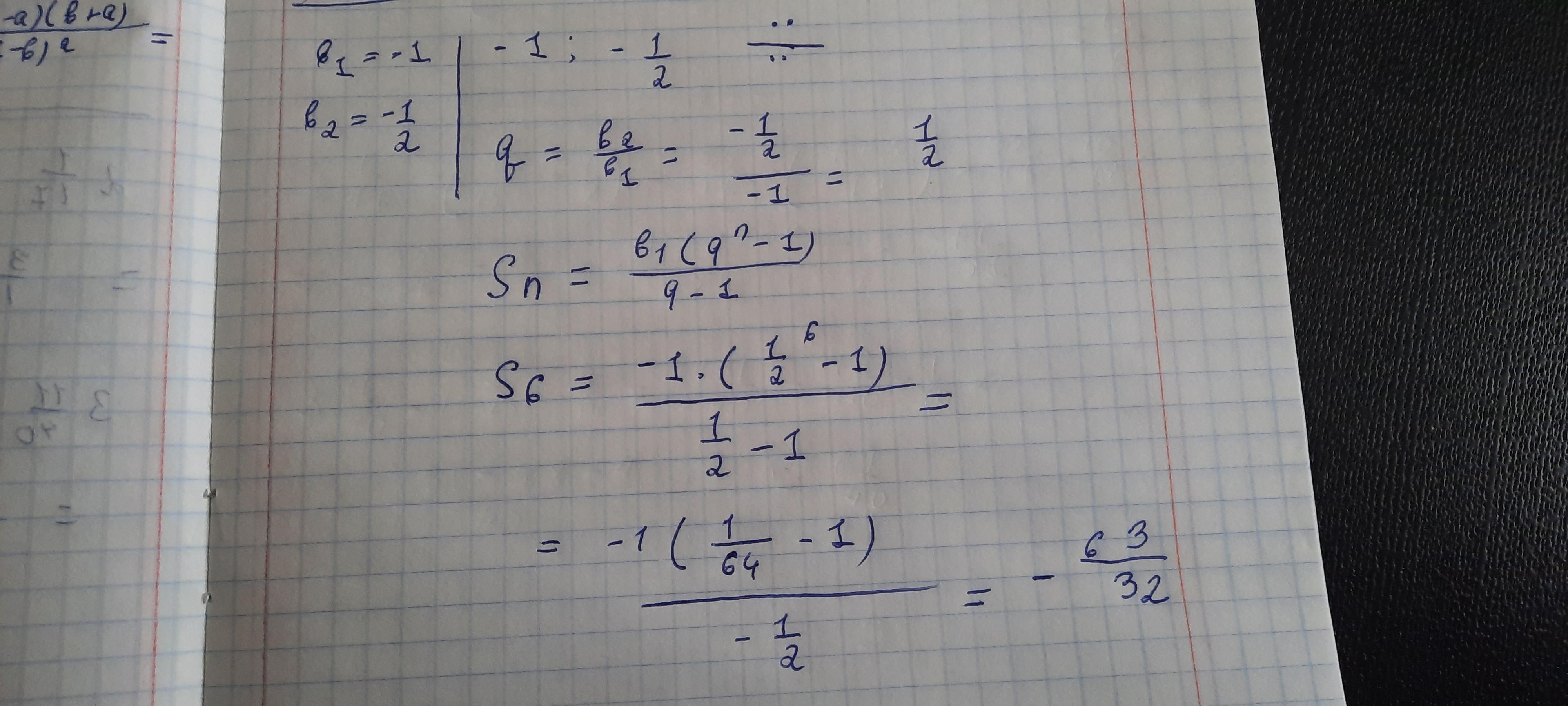 Відомо,що (b n) : -1; -1/2; ... геометрична прогресія. Тоді сума перших шести її членів дорівнює