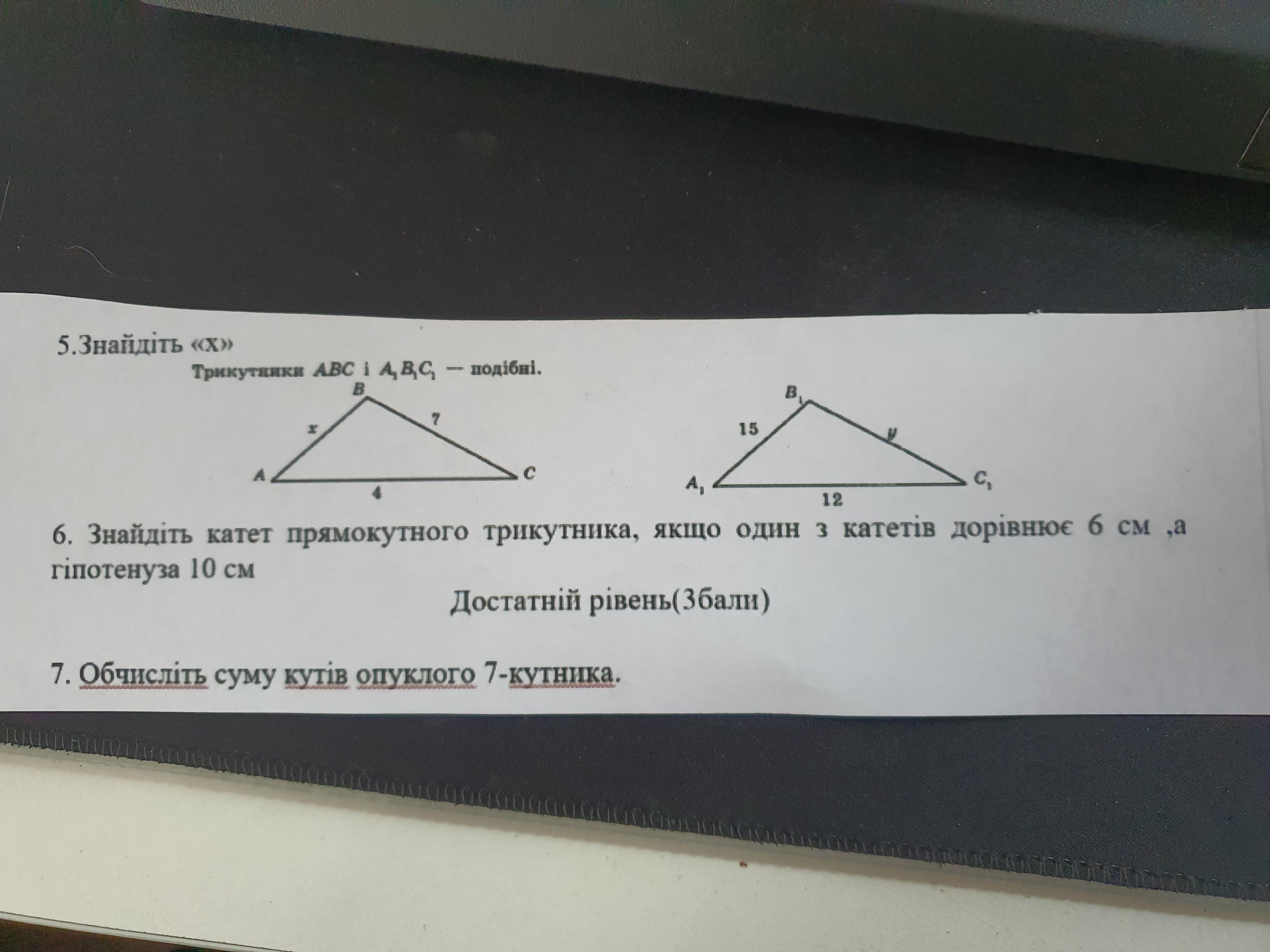 7) Сума кутів опуклого многокутника знаходиться за формулою: