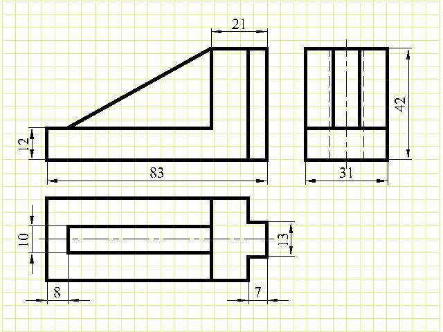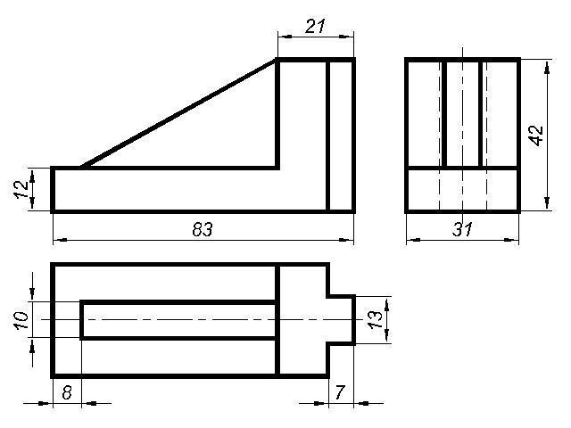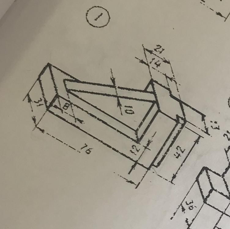Инженерная графика, разбить фигуру на 3 части, вид сверху, вид слева и сам рисунок. Указать размеры.