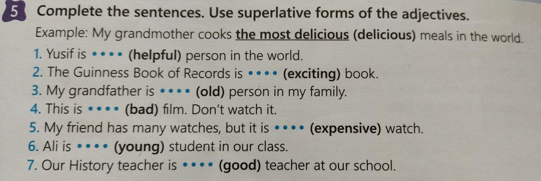 Превосходная степень для маленьких слов образуется с помощью артикля the и окончания -est, для больших — перед прилагательным ставится the most, при этом само прилагательное не меняется. Слова good, bad, far являются исключениями и имеют особую форму. Успехов!