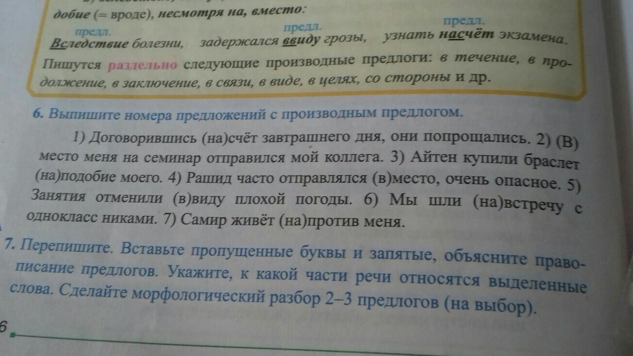пожалуйста помоги мне ещё в этом упражнении те предлоги в скобках слитно или раздельно пишутся пожаалууйстаа
