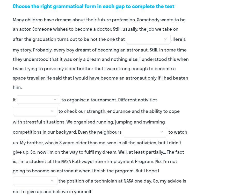 Выберите правильную грамматическую форму.