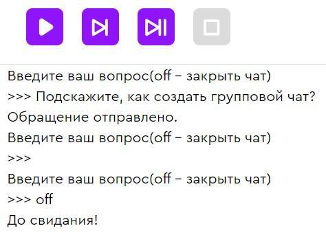 Программа пересылает вопросы пользователя нужному оператору до введения стоп-слова off.