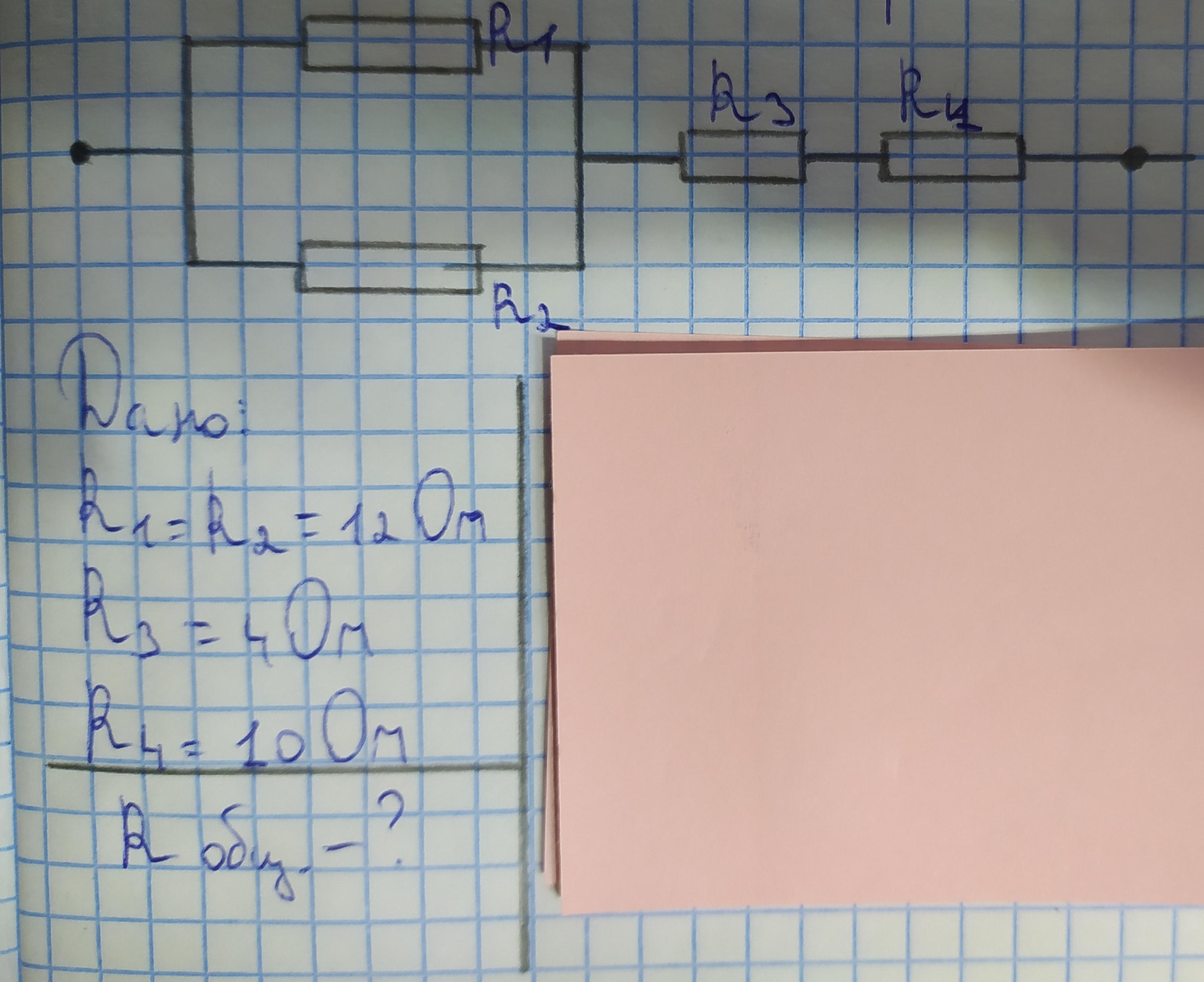 R=R1*R2/(R1+R2)+R3+R4=12*12/(12+12)+4+10=20 Ом