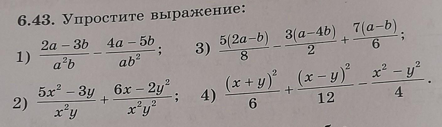 2) 5x²- 3y/ x²y+ 6x-2y²/x²y²=5x²y-3y²+6x-2y²/x²y²=5x²y-5y²+6x/x²y²