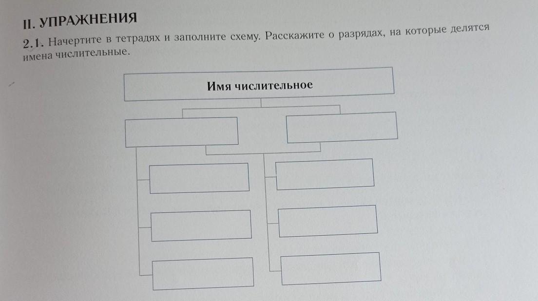 У имён числительных нет единой системы склонения: числительное один склоняется как местоимение этот; числительные два, три, четыре имеют особую систему склонения (четыре, четырёх, четырём, четыре, четырьмя, о четырёх); числительные от пяти до двадцати и тридцать склоняются как существительные 3-го склонения. Числительные сорок, девяносто, сто имеют две падежные формы: в им.п. и вин.п. – сорок, девяносто, сто, а в остальных падежах – сорока, девяноста, ста. Числительные от пятидесяти до восьмидесяти и от двухсот до девятисот при склонении изменяются обе части; числительные тысяча, миллион, миллиард склоняются как существительные соответствующего типа склонения.