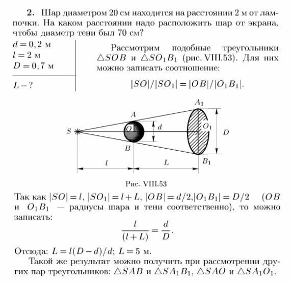 Шар диаметром 20 см находится на расстоянии 2 м от лампочки. На каком расстоянии нужно расположить шар от экрана чтобы диаметр тени был 70 см?
