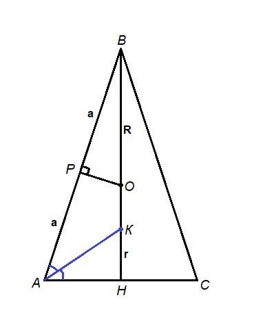 ВН = 18 см - высота, проведенная к основанию, значит и медиана и биссектриса, тогда центр описанной окружности, точка О, лежит на ВН.