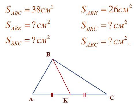 Я так понял это две разные задачи? Если да, то Sabk=Sbks так как это треугольники с общей вершиной и равными основаниями ( по т. о перекладывании площадей) отсюда