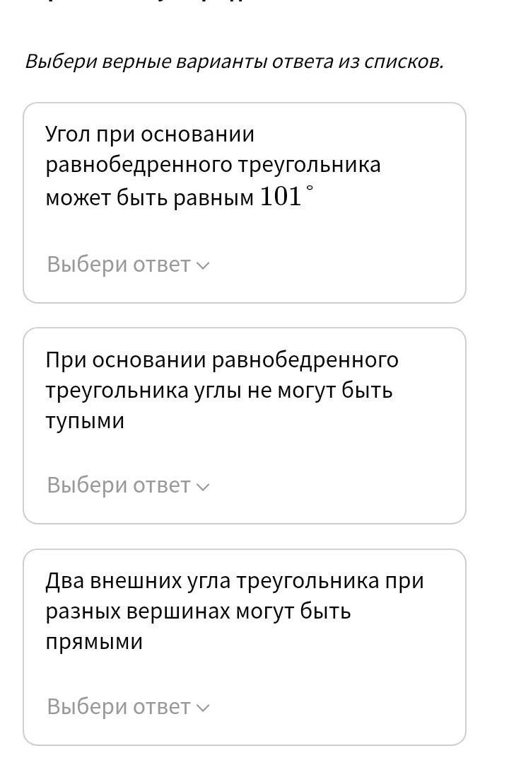 3)только 1 внешний угол может быть 90⁰ при условии того что треугольник будет прямоугольным
