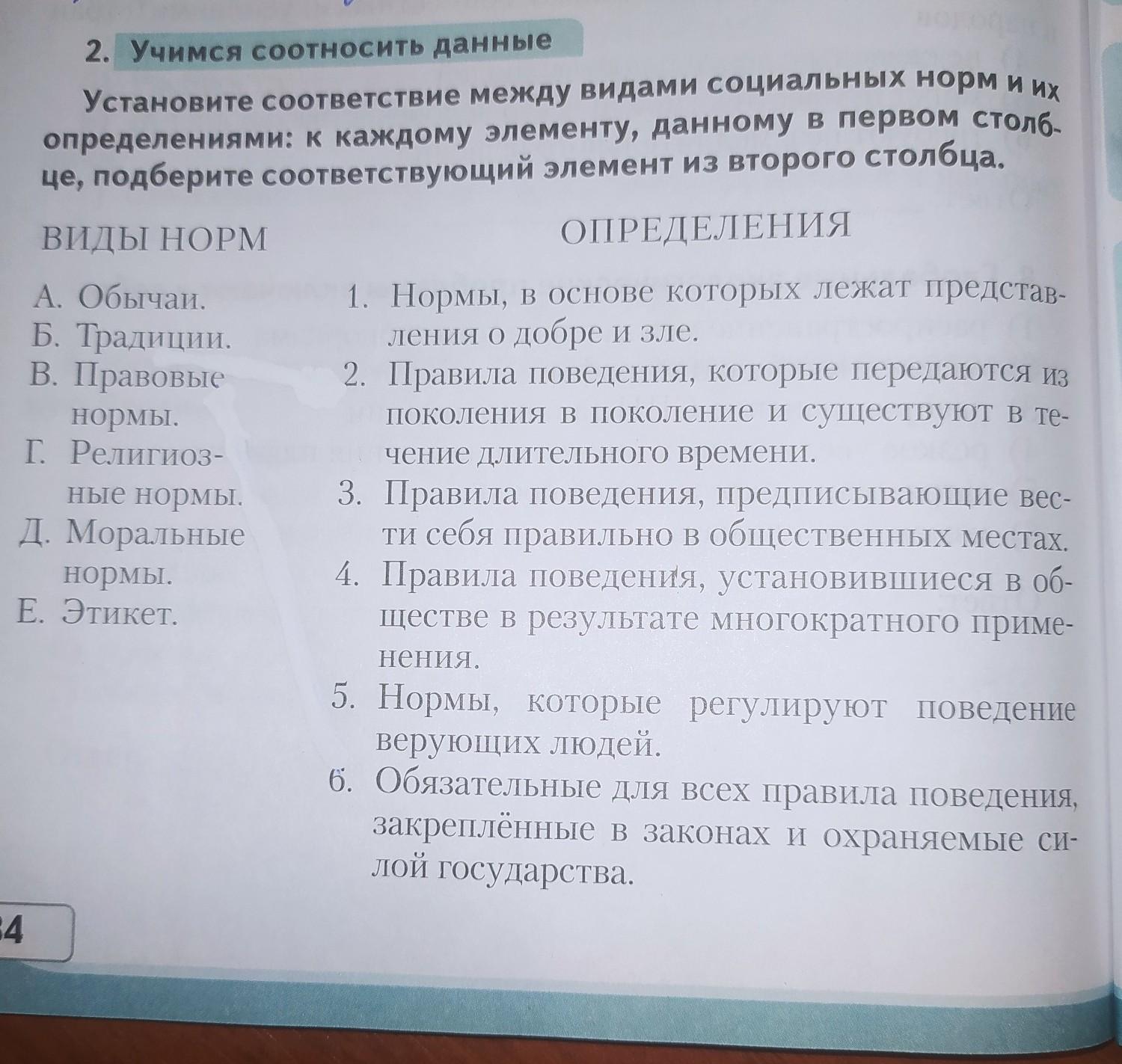 установите соответствие между видами социальных норм и их определениями к каждому элементу данному в первом столбце, подберите соответствующий элемент из второго столбца