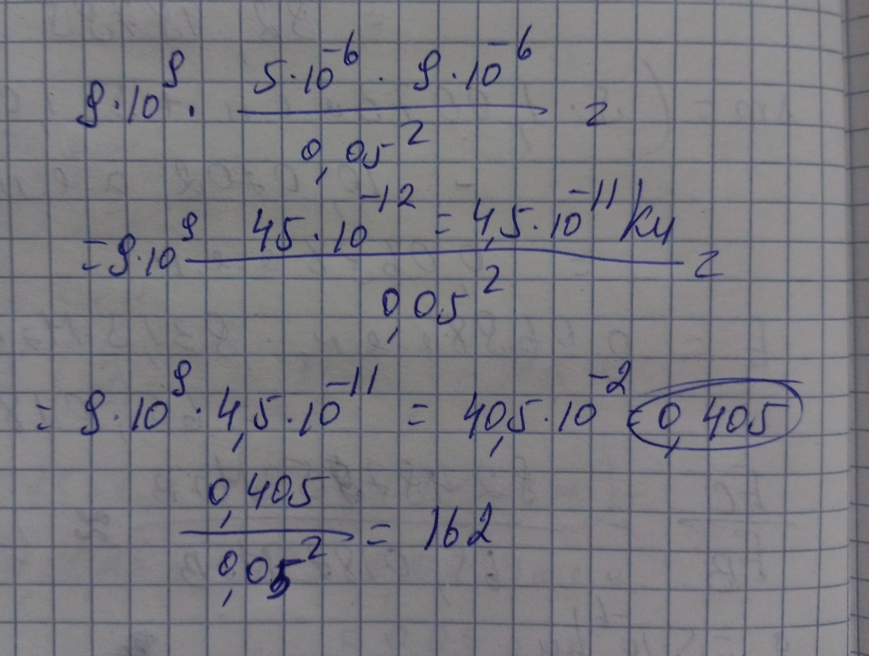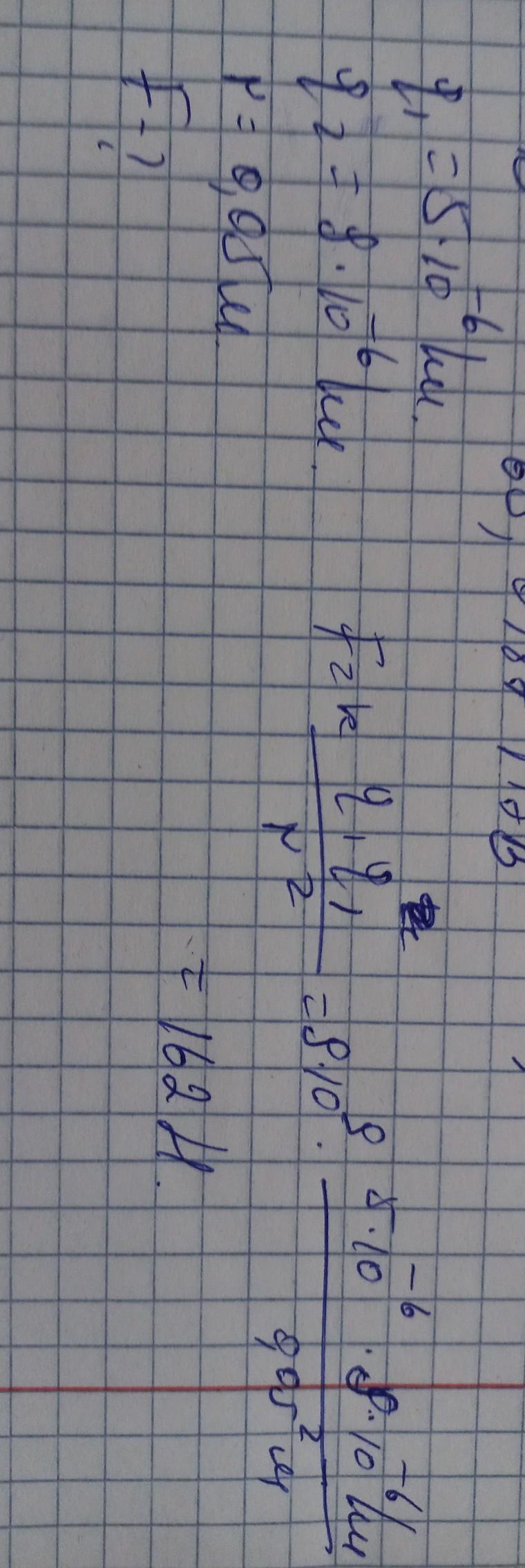 З якою силою взаємодіють два заряди 5мкКл і 9мкКл що знаходяться находясь на відстані 5см в вакуумі?