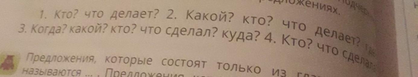 10. По вопросам составь и запиши предложения. Подчеркните главные члены в не распространённых предложениях. 1. Кто? что делает? 2. Какой? кто? что делает? где? 3. Когда? какой? кто? что сделал? куда? 4. Кто? что сделала?