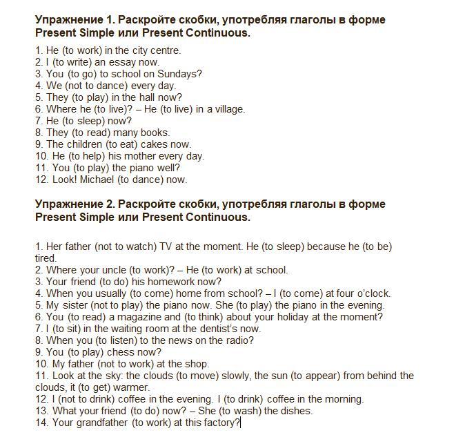 Упражнение 2. Раскройте скобки, употребляя глаголы в форме Present Simple или Present Continuous.