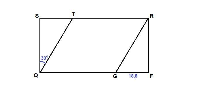 в прямоугольнике QSRF провели QT паралелльно GR так что угол SQT =30 найдите значение QT если GF=18.8мм