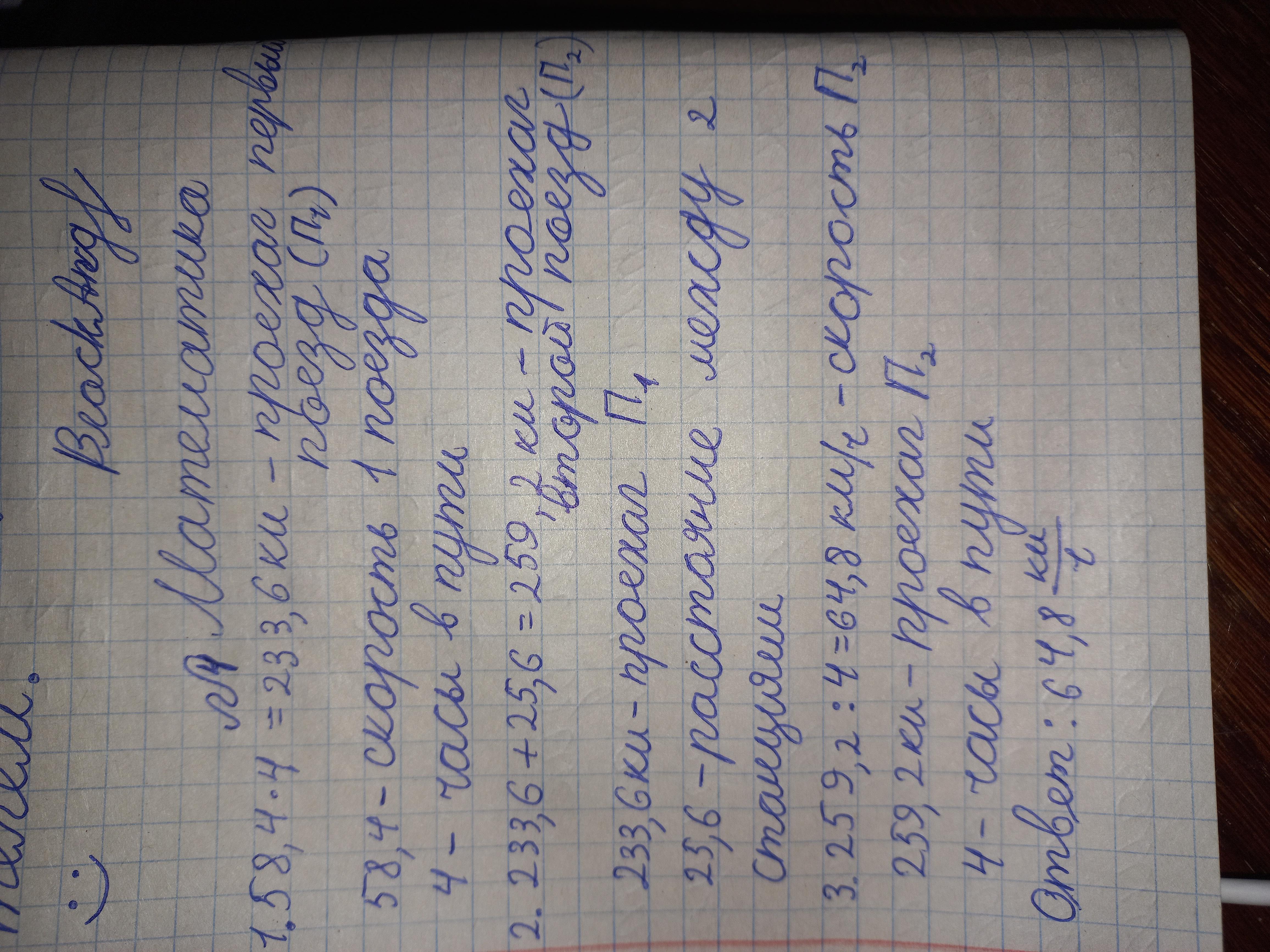 1) 58,4 * 4 = 233,6 км это проехал первый поезд, за 4 часа