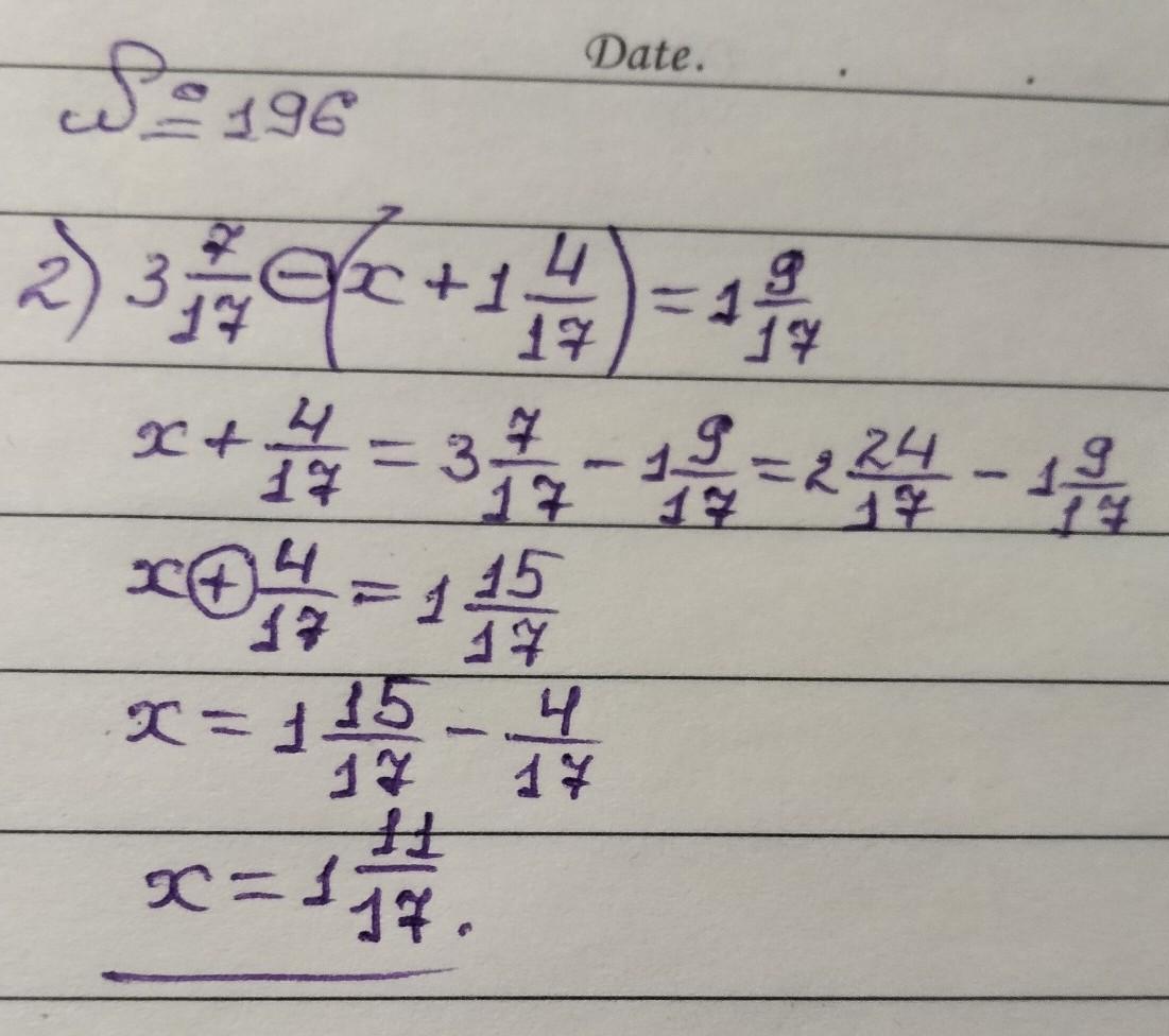 2) 3 7/17 - (x + 1 4/17) = 1 9/17
