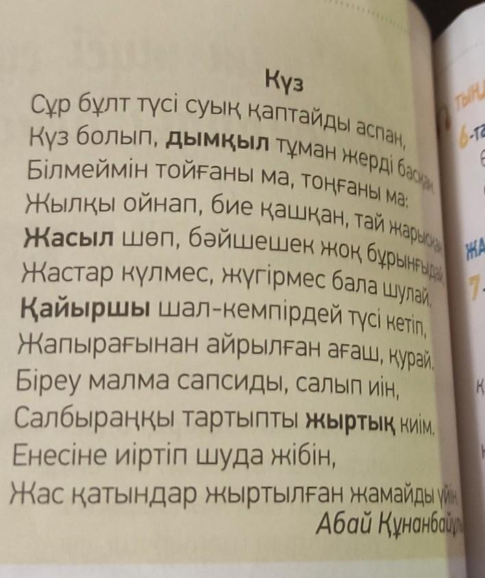3-тапсырма. 94бет. Өлеппі окыпыз. Тірек сөздерді теріп жазыныз.Өлендегі негізгі ой